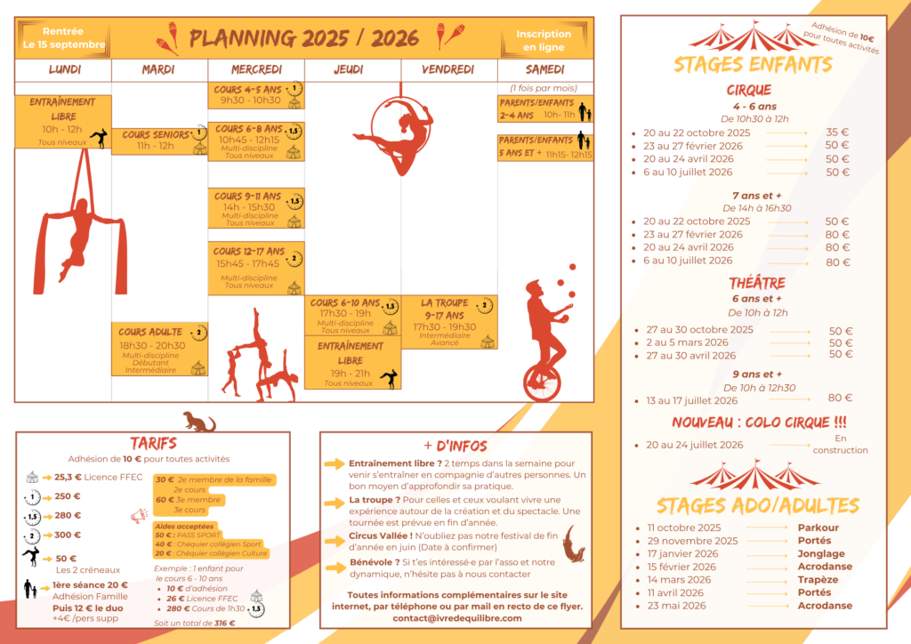 Disciplines : Aérien – Acrobatie – Jonglerie – Équilibre